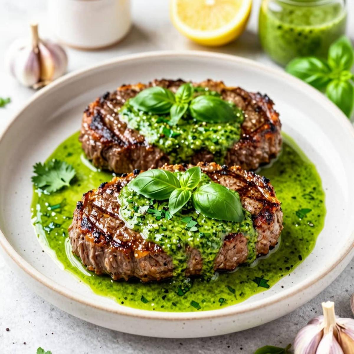 Бифштекс - это, пожалуй, одно из самых любимых и универсальных мясных блюд. Его можно готовить по-разному, но сегодня я предлагаю вам особый вариант - бифштекс с зеленым соусом. Это не просто мясо, это настоящая симфония вкуса, где сочный, ароматный бифштекс из рубленого мяса дополняется изысканным соусом на основе мясного бульона, сливочного масла и свежей зелени. Зеленый соус не только придает блюду дополнительную сочность, но и обогащает его новыми, яркими нотками. Представьте: нежная, тающая во рту мясная котлета, политая густым, ароматным соусом с лимонной кислинкой и свежестью базилика и петрушки. Это блюдо - идеальный выбор для уютного семейного ужина или для того, чтобы порадовать себя и близких чем-то особенным. Готовится оно не очень сложно, но результат всегда превосходный. Я подробно расскажу вам о всех этапах, чтобы у вас получились идеальные бифштексы с зеленым соусом.