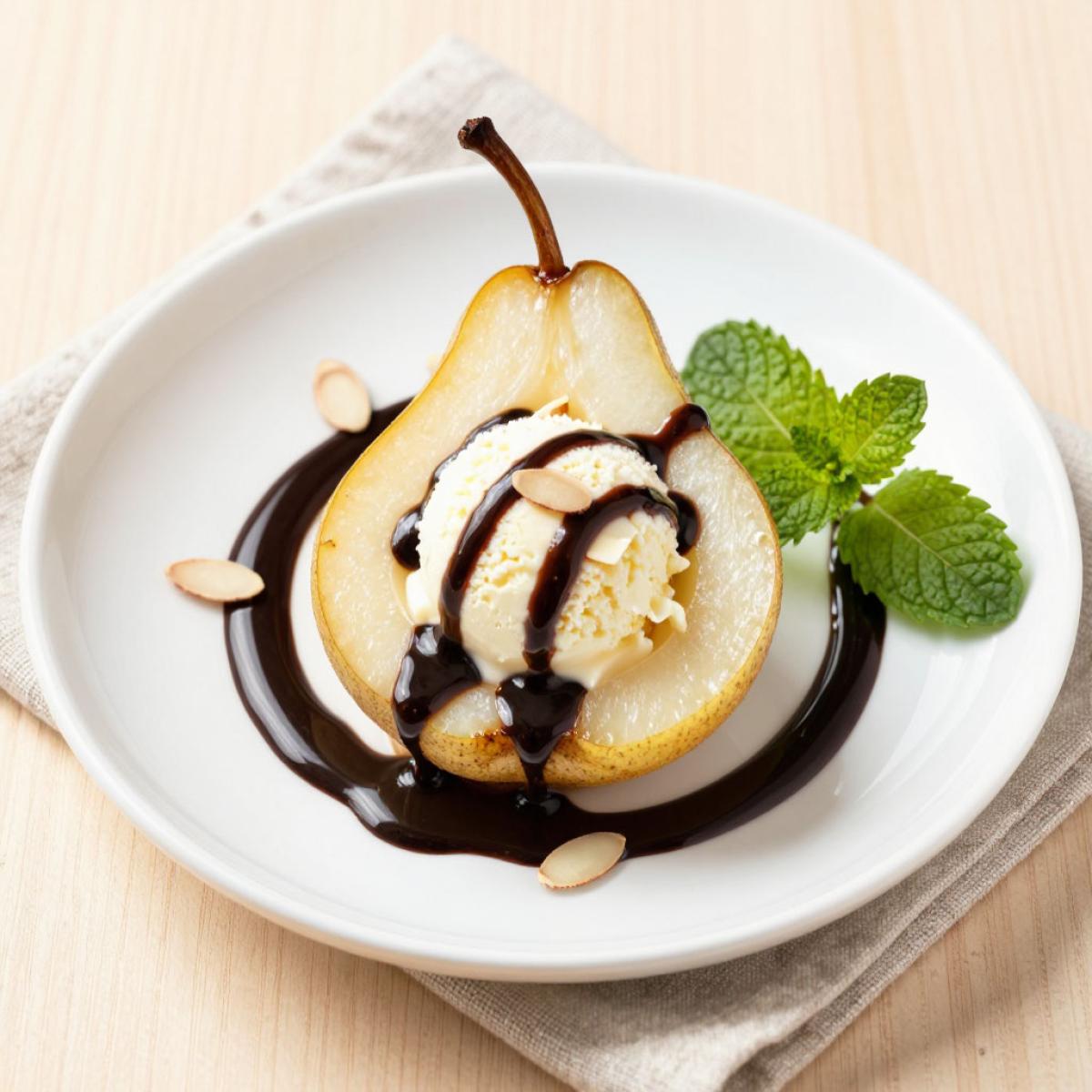 Грушевый десерт с мороженым и шоколадным соусом - пошаговый рецепт