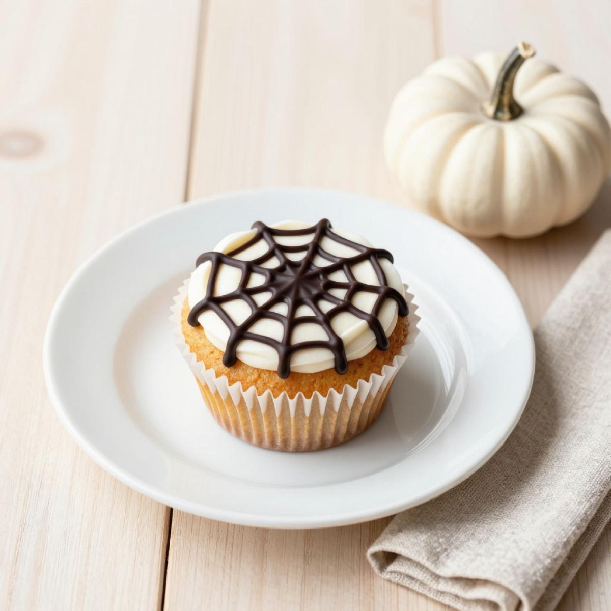 Капкейк Паутинка на Хеллоуин с шоколадным декором - пошаговый рецепт