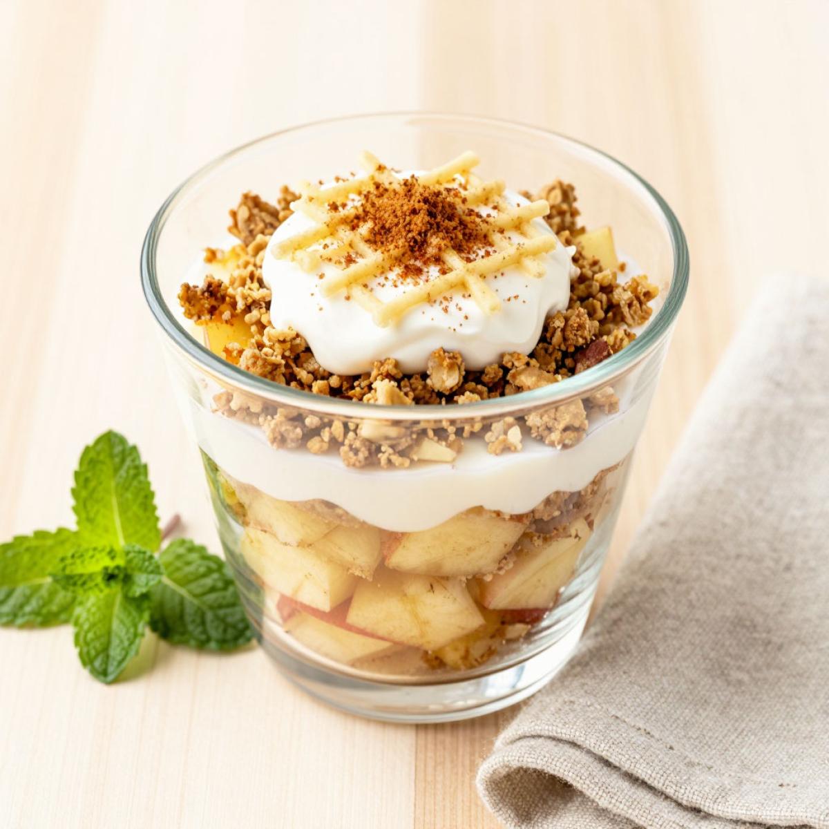 Этот десерт лучше всего подавать в прозрачных бокалах или креманках - так видна вся красота слоев. Перед подачей можно украсить каждый бокал веточкой свежей мяты или лимонной мелиссы. Также отлично подходят ягоды: малина, черника, голубика - они добавят яркий цвет и свежую кислинку. Если вы подаете десерт на детский праздник, посыпьте верхнюю крошку цветной кондитерской посыпкой или сахарными драже. Для взрослой версии можно добавить в яблочно-сметанную массу 2 столовые ложки коньяка или рома. Десерт можно подавать не только в бокалах, но и в широких пиалах, а также в качестве начинки для тарталеток или вафельных корзиночек. Если у вас нет времени на красивую подачу, просто выложите десерт в общую миску и подавайте ложкой - вкус от этого не пострадает.