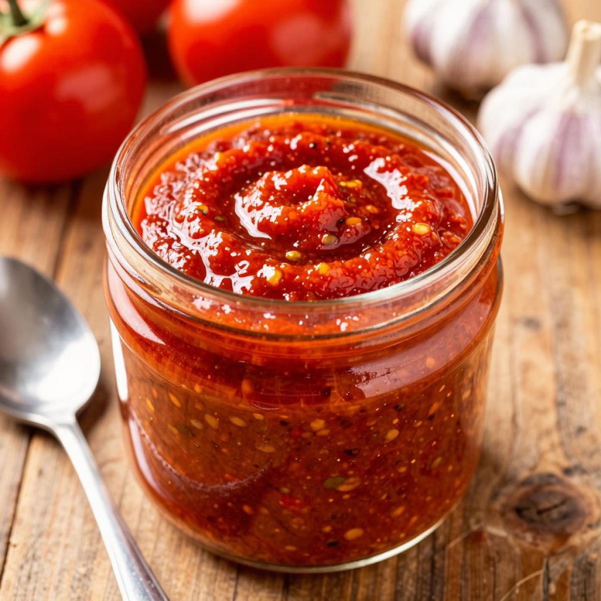 Аджика - острая приправа. Овощи - витамины. Чеснок и перец - полезны для иммунитета. Калорийность - примерно 100-150 ккал на 100 г.