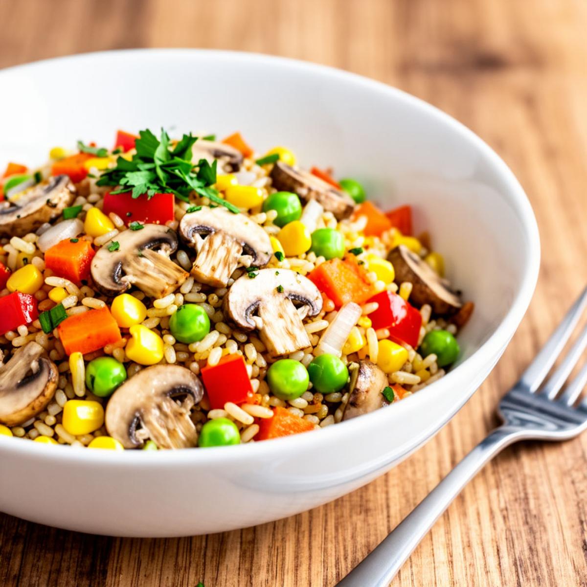 Жареный рис с овощами и грибами - острый вегетарианский рецепт - пошаговый рецепт