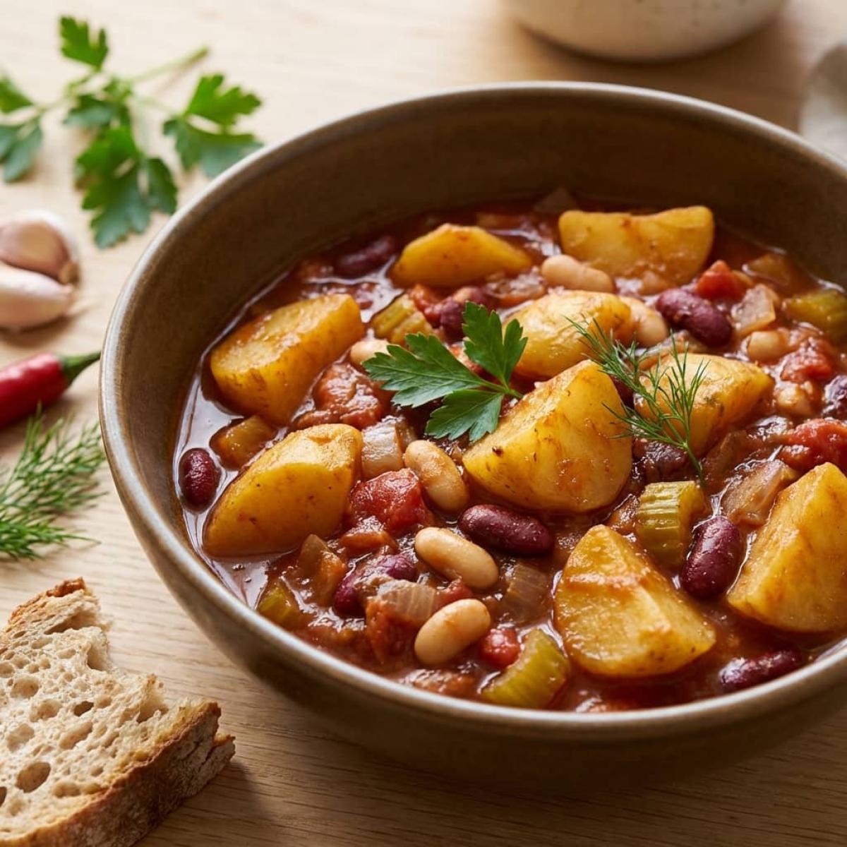 Точное происхождение этого рецепта проследить сложно. Он, скорее всего, относится к категории "домашней" или "деревенской" кухни, которая существует во многих культурах. Блюда из картофеля и фасоли, тушеные с овощами, готовили крестьяне в разных странах, используя то, что было под рукой. В латиноамериканской кухне, например, очень популярны тушеные блюда с фасолью и картофелем. В европейской кухне также есть множество подобных рецептов. Наш вариант - с добавлением сельдерея, чеснока и чили - имеет легкий средиземноморский или латиноамериканский акцент. Это прекрасный пример того, как простые, "народные" рецепты путешествуют по миру и адаптируются к местным продуктам и вкусам.