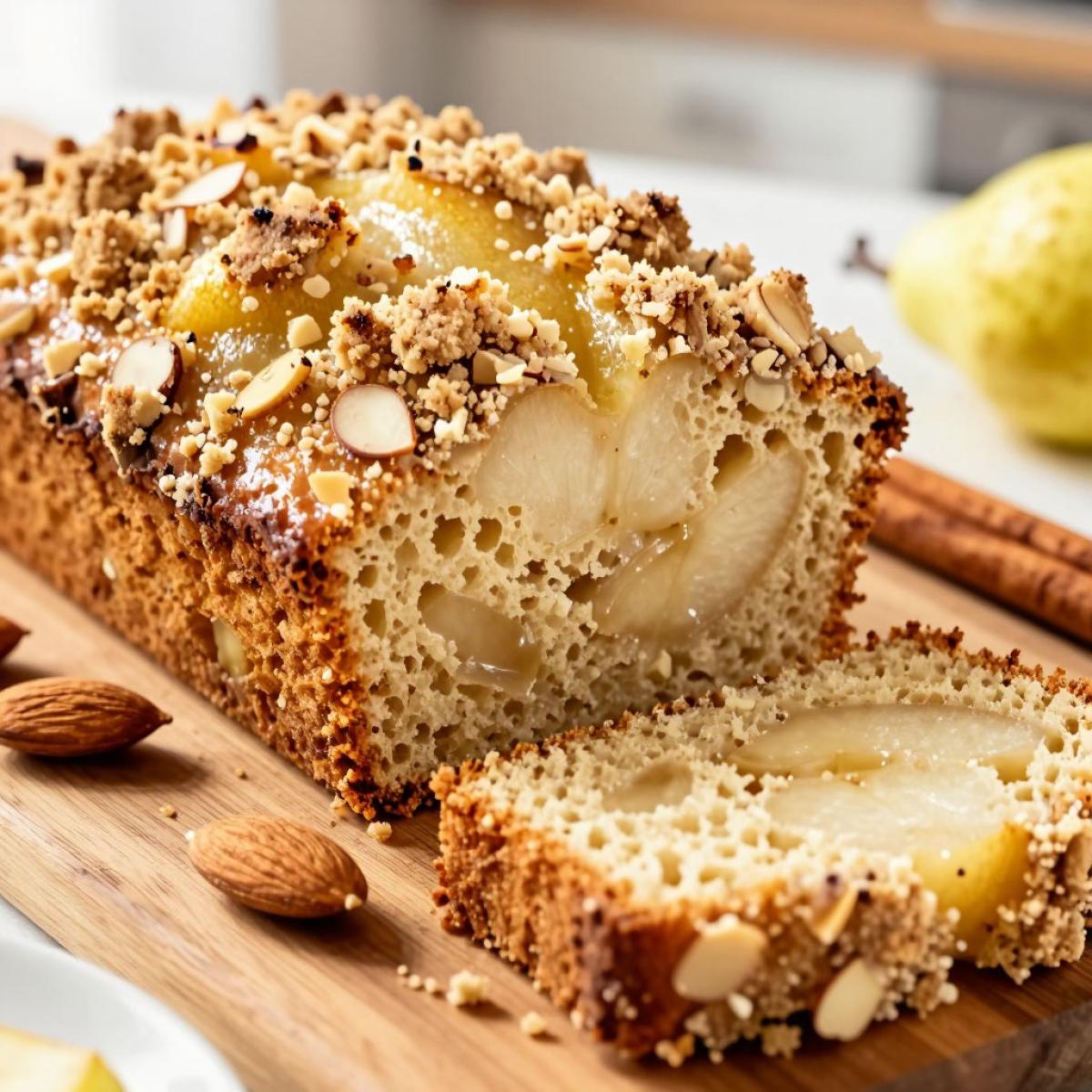 Сладкий хлебец с грушами - это десерт. Но в нем есть полезные компоненты. Груши богаты клетчаткой и калием. Они полезны для сердца и пищеварения. Миндаль дает витамин E и магний. Он полезен для кожи и нервов. Оливковое масло - источник полезных мононенасыщенных жиров. Оно снижает холестерин. Корица улучшает чувствительность к инсулину. Помогает контролировать сахар в крови. Яйца - белок и холин для мозга. В этом десерте меньше насыщенных жиров (благодаря оливковому маслу). Он не такой тяжелый, как классический масляный кекс. Чтобы сделать его еще полезнее, уменьшите сахар на треть. Замените часть муки на цельнозерновую. Добавьте больше груш.