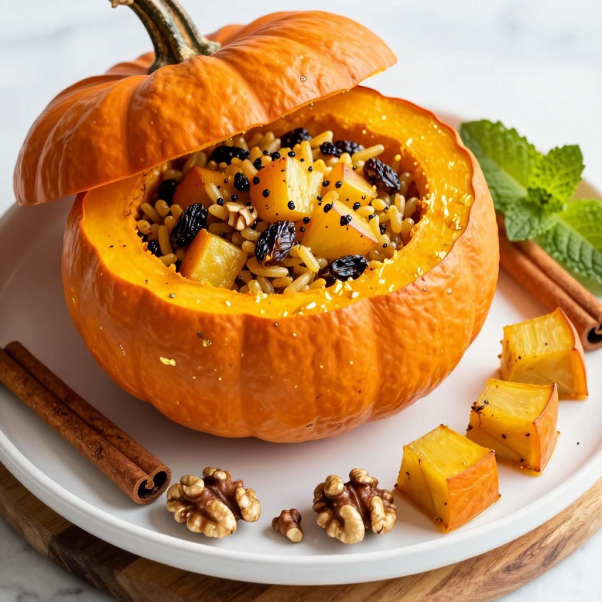 Я обожаю осенние десерты. А тыква, фаршированная сладким рисом - это сказка. Представьте целую тыкву-бочонок. Внутри - нежная начинка. Рис, тыквенная мякоть, изюм, яблоки, мед. Аромат корицы и ванили. Тыква запекается в духовке. Кожура становится мягкой. Мякоть пропитывается соками начинки. Это блюдо пахнет осенью. Уютом. Детством. Мои домочадцы просят его каждую осень. Гости всегда в восторге. Я научу вас готовить это чудо. Вы узнаете, как выбрать тыкву. Как подготовить ее для фаршировки. И как сделать начинку сочной. Готовить несложно. Нужно немного терпения. Весь процесс займет около 2 часов. Это блюдо подходит для осеннего ужина. Для воскресного обеда. Для праздничного стола. Поверьте моему опыту - эта тыква станет вашим любимым десертом.
