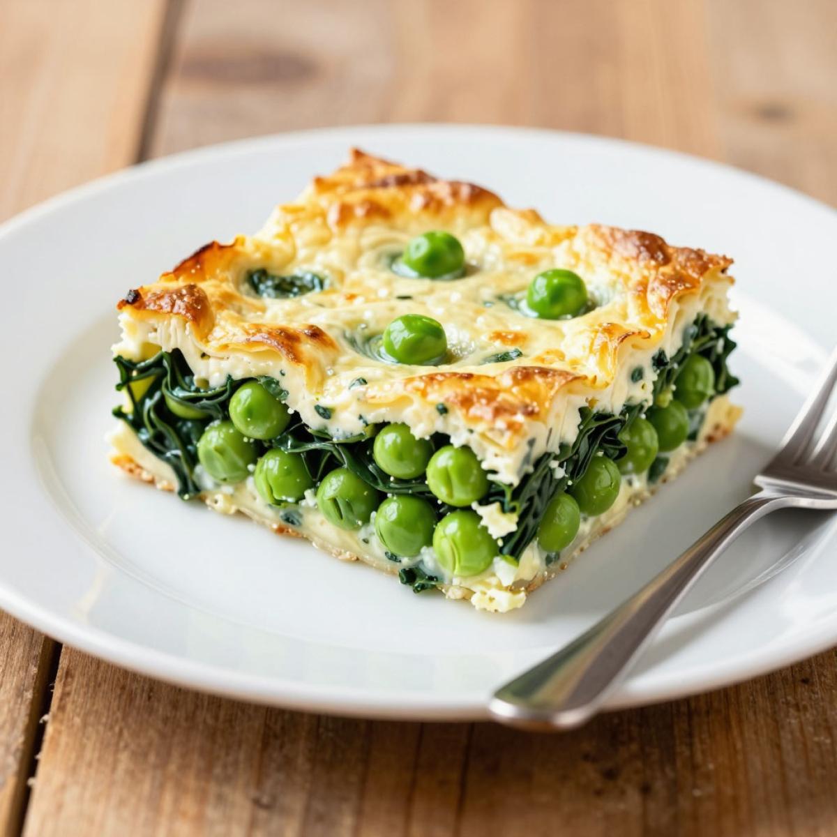 Запеканка из рикотты с шпинатом и горошком - легкий ужин - пошаговый рецепт