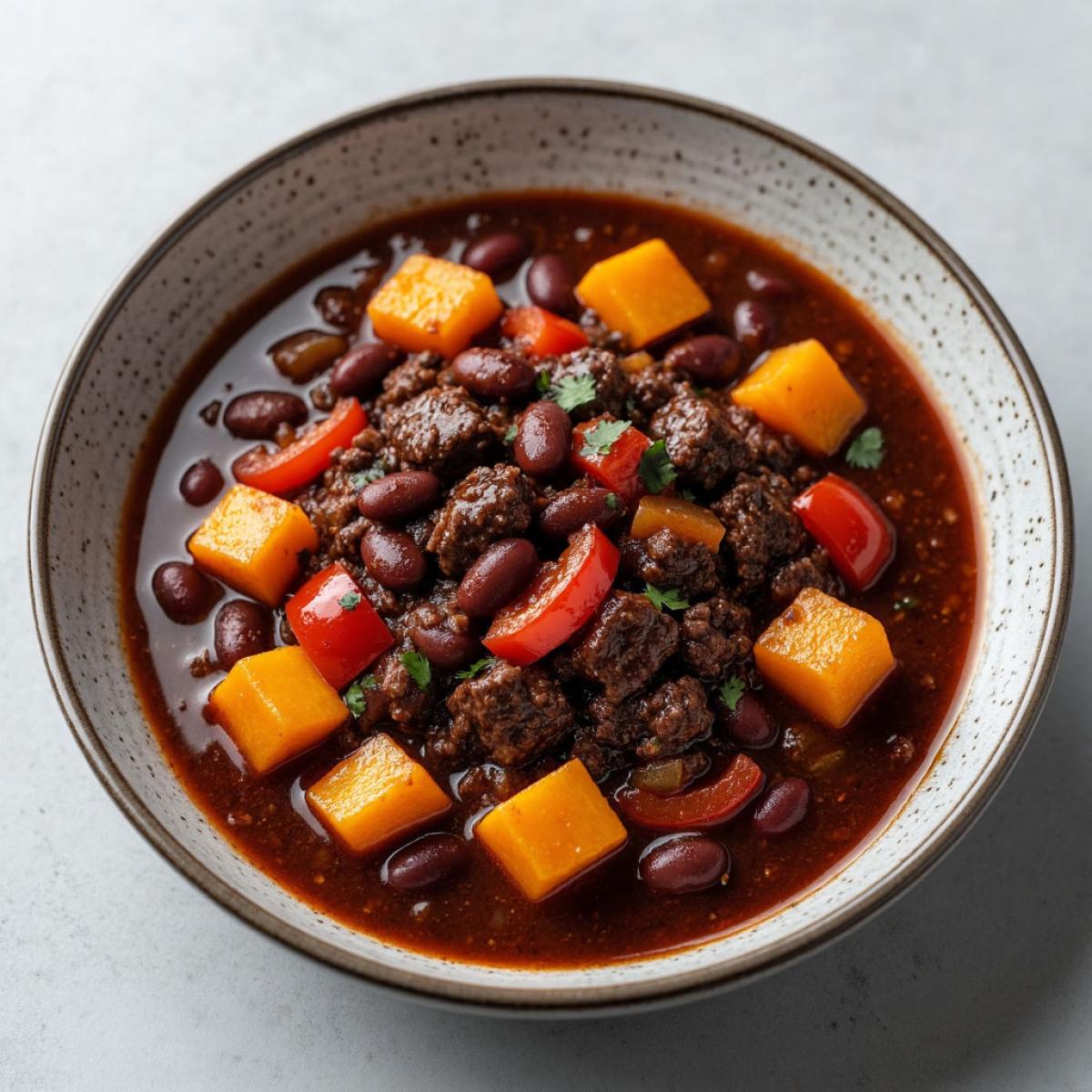 Рагу — это не конкретное блюдо, а скорее способ приготовления, который есть в каждой кухне мира. Французское ragoût означает «возбуждать аппетит». Изначально так называли любое тушеное блюдо из мяса и овощей. В русской кухне рагу всегда было крестьянской едой, способом использовать все, что есть под рукой: остатки мяса, овощи с огорода, крупы. Наш рецепт — современная интерпретация этой идеи. Тыква, которая в России всегда была доступна и любима, соединяется с говядиной и фасолью, а томатная паста и болгарский перец придают ему южный, почти средиземноморский акцент. Это блюдо — дитя глобализации и кулинарного творчества. Оно вобрало в себя лучшее из разных традиций: европейское долгое томение, южную пряность и русскую любовь к сытным, густым похлебкам. Это еда для большой семьи, для уютных вечеров, для тех, кто ценит вкус и аромат домашней кухни.