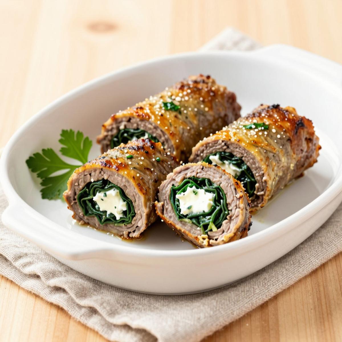 Мясные рулетики с начинкой (брачолле) - это классика итальянской кухни. В Италии их готовят из говядины, телятины или свинины, начиная сыром, зеленью, ветчиной и орехами. Во Франции подобные рулетики называются «папийоты». В России они стали популярны в 1990-2000-х годах как элегантная закуска для праздничного стола. Сегодня рулетики из телятины со шпинатом и сливочным сыром - это любимое блюдо для тех, кто ценит нежное мясо и изысканные сочетания.