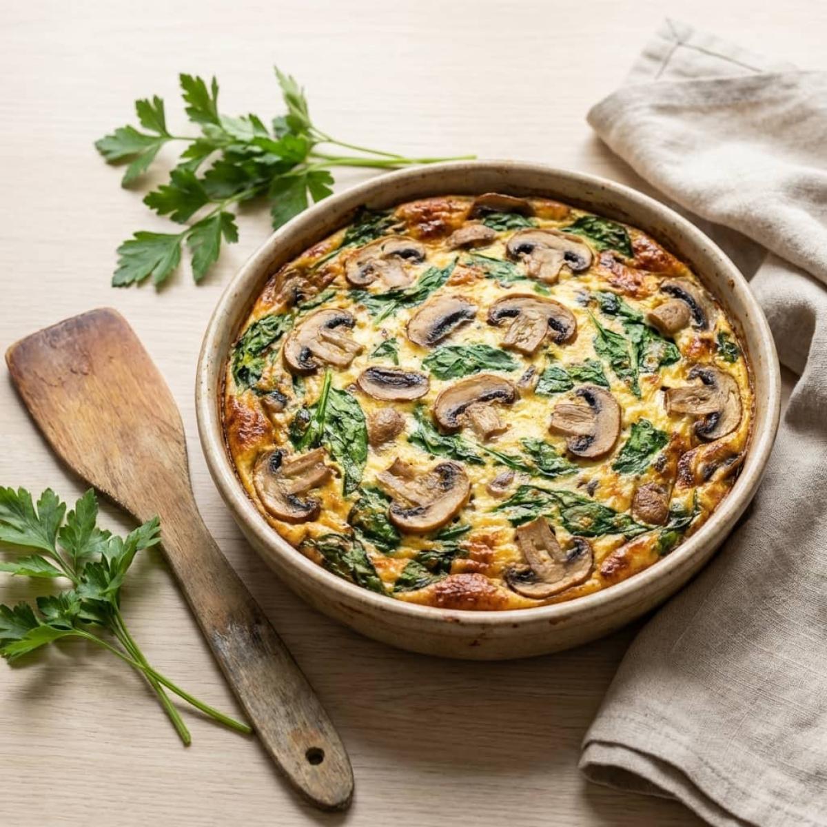 Киш со шпинатом и грибами: легкая запеканка без теста