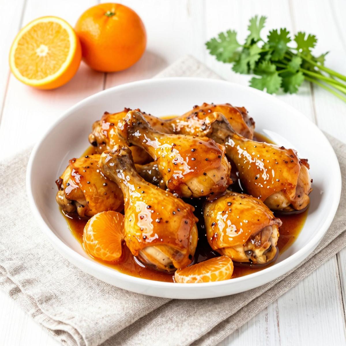 Курица с мандаринами - это блюдо, которое я готовлю на новогодние праздники. Запах мандарин - это аромат детства, волшебства и уюта. А когда этот запах соединяется с аппетитной, румяной курочкой, получается настоящий праздник вкуса. В этом рецепте куриные ножки сначала маринуются в смеси из мандаринов, соевого соуса, чеснока и зелени, а затем обжариваются и тушатся в том же маринаде. Мясо получается невероятно сочным, с легкой кислинкой и сладостью цитрусов, а аромат стоит такой, что вся семья сбегается на кухню. Готовится блюдо просто, но требует времени на маринование. В этом рецепте я расскажу, как выбрать мандарины для маринада, как правильно замариновать курицу, чтобы она пропиталась ароматами, и как обжарить и потушить ее, чтобы мясо осталось сочным.