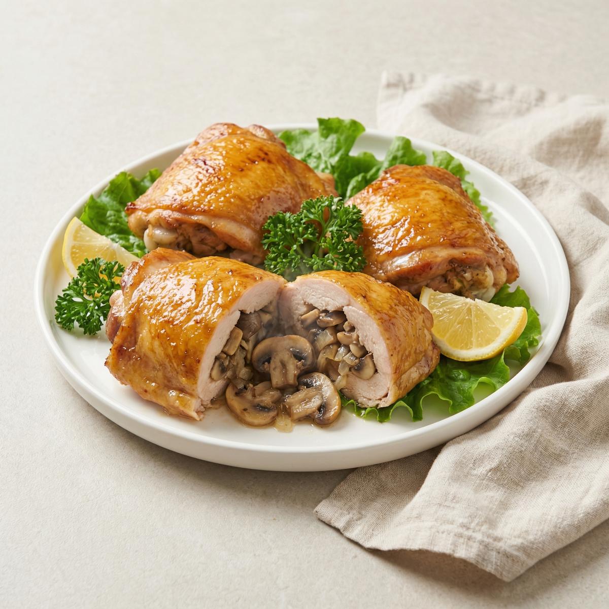 Куриные бёдрышки с грибной начинкой — это блюдо, которое я готовлю, когда хочу удивить гостей или порадовать семью чем-то особенным, но без лишних хлопот. Сочное, нежное куриное мясо, хрустящая румяная корочка и ароматная грибная начинка под кожей — это сочетание вызывает настоящий восторг. А готовится все на удивление просто. Сегодня я поделюсь с вами рецептом этих замечательных бедрышек. Мы будем использовать куриные бедра с кожей — именно кожа позволяет создать "карманчик" для начинки и дает аппетитную корочку. Грибы с луком обжариваются до золотистого цвета, затем начинка аккуратно закладывается под кожу. Бедрышки натираются специями, смазываются майонезом и запекаются в духовке до румяной корочки. Это блюдо из международной кухни, оно не острое, с насыщенным, сочным вкусом. Идеально для праздничного стола, ужина или пикника.