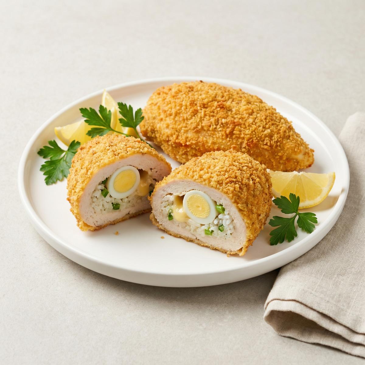 Куриные грудки, фаршированные рисом и перепелиными яйцами — это блюдо, которое я всегда готовлю, когда хочу удивить гостей чем-то необычным и красивым. Представьте себе: нежное куриное филе, внутри которого скрывается целое перепелиное яйцо, окруженное ароматным рисом с зеленым луком и расплавленным сыром. А сверху — золотистая, хрустящая панировка. Это настоящий кулинарный шедевр, который выглядит очень эффектно, но готовится на удивление просто. Сегодня я поделюсь с вами рецептом этого замечательного блюда. Мы будем использовать куриные грудки — их нужно разрезать, чтобы получился "карман" для начинки. Внутрь мы положим пластинку сыра, рис с зеленым луком и целые перепелиные яйца. Затем грудки запанируем в сухарях со специями и запечем в духовке. Блюдо из международной кухни, оно не острое, с насыщенным, многослойным вкусом. Идеально для праздничного стола.