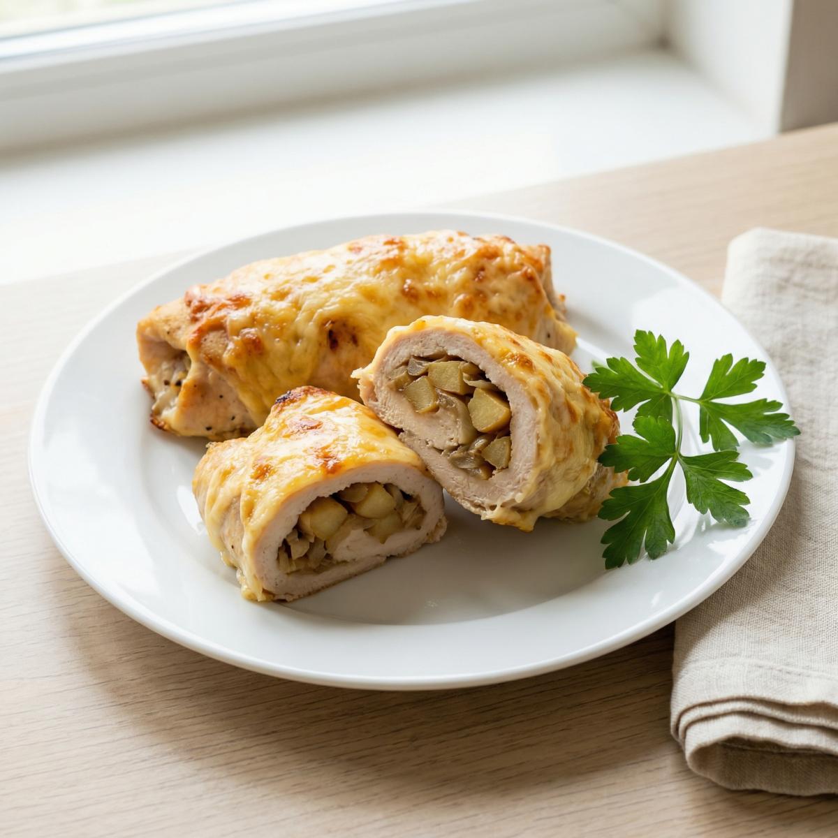 Рулеты из куриного филе - это блюдо, которое появилось в европейской кухне в XIX веке как способ разнообразить диетическое куриное мясо. Идея добавлять фрукты к мясу пришла из французской кухни, где часто использовали яблоки, груши и айву для приготовления соусов и начинок. В русской кухне сочетание курицы с яблоком стало популярным в советское время, когда яблоки были доступны круглый год. Рецепт куриных рулетов с яблоком и сыром - это современная интерпретация, где добавление сыра придает блюду сливочность и делает его более сытным. Сегодня такие рулеты готовят на ужин, праздничный стол и даже берут с собой на пикник.
