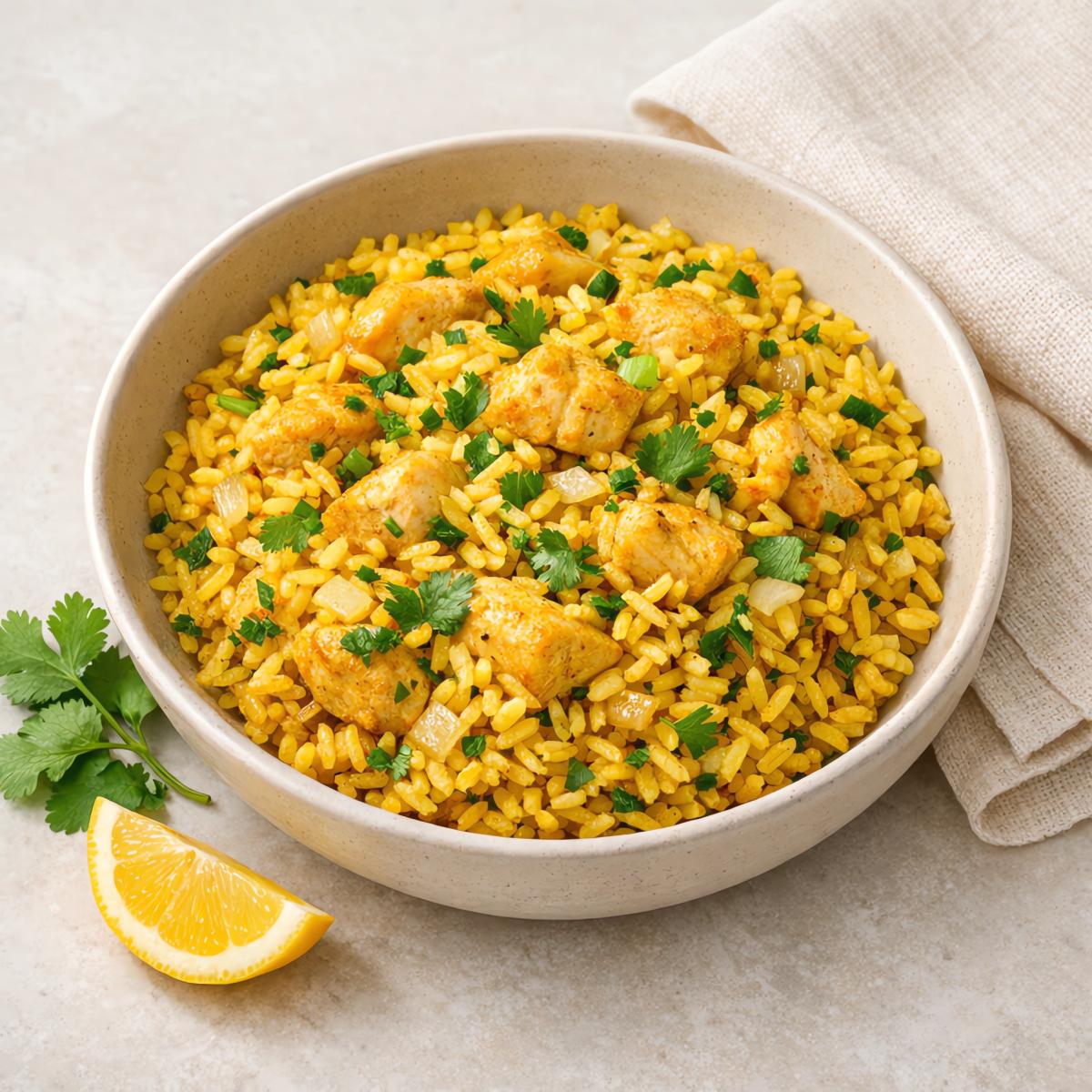 Рис с курицей и карри — это блюдо, которое я готовлю, когда хочу чего-то ароматного, сытного и невероятно уютного. Золотистый рис, пропитанный пряным ароматом карри, нежные кусочки куриного филе, сладковатый лук и чеснок — это сочетание способно поднять настроение даже в самый пасмурный день. Я люблю этот рецепт за его простоту и скорость: все готовится в одной посуде, а результат всегда радует. Сегодня я поделюсь с вами секретами приготовления идеального риса с курицей и карри. Мы будем использовать куриное филе — оно готовится быстро и получается очень нежным. Рис сначала обжаривается с луком и специями, а затем варится в бульоне, впитывая все ароматы. Это блюдо из русской кухни, оно получается немного острым (благодаря карри), с насыщенным, ярким вкусом. Идеально для обеда или ужина.