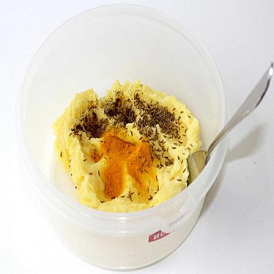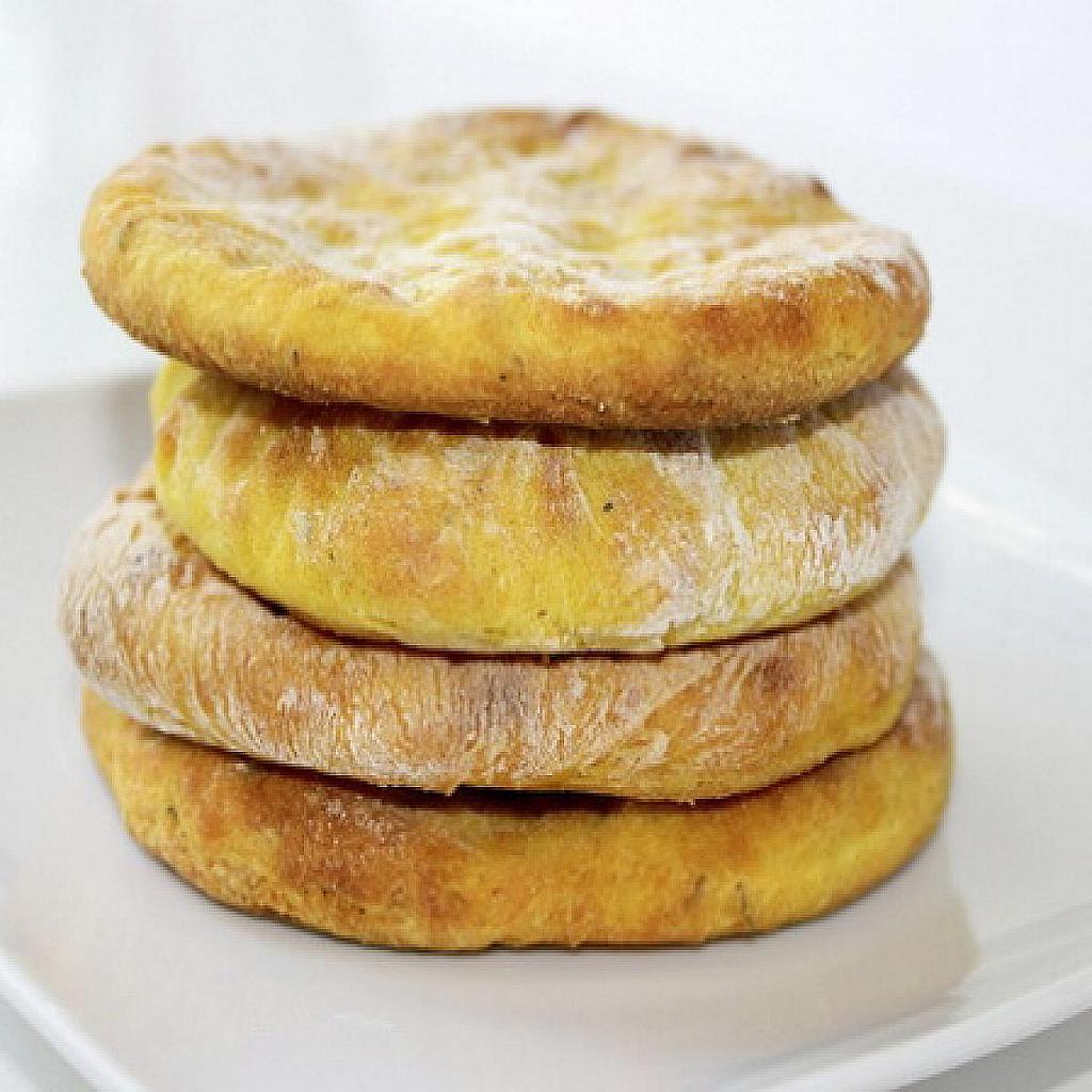 Если у вас осталось картофельное пюре, попробуйте приготовить из него простое, вкусное блюдо - картофельные лепешки с зеленью, чесноком и пряностями. Варёный картофель размять толкушкой с добавлением сливочного масла и картофельного отвара. Вбить яйцо и тщательно размешать.Картофельную массу разделить на две части. В одну часть добавить порошок куркумы и молотый тмин. В другую - измельченную свежую зелень и толченый чеснок.Каждую часть в равных долях смешать с мукой и разрыхлителем. По отдельности замесить мягкое тесто, сформировать два кома и поставить на 30 мин. в холодильник.Картофельное тесто разделить на 6 частей. Каждый кусочек обвалять в муке, сформировать лепёшки толщиной примерно 1 см. Уложить на промасленный противень и поставить в горячую духовку. Запечь до красивой золотистой корочки.Готовые лепешки можно подавать с маслом, паштетом или сметаной, а также вместо хлеба к первым блюдам или овощным салатам.