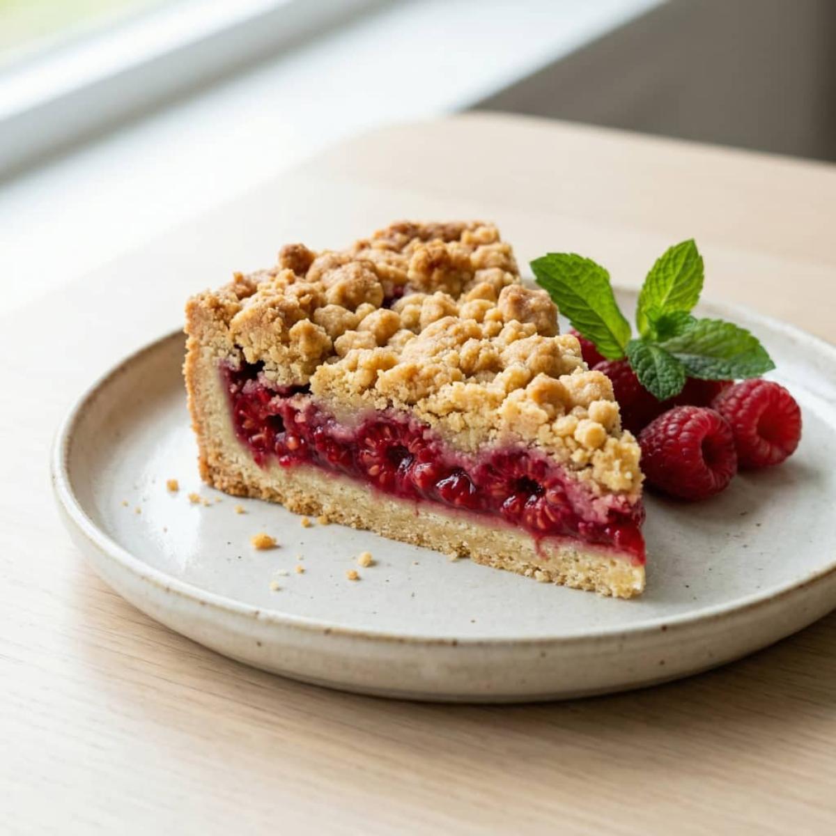 - 3. Почему малина "утонула" в тесте? - В этом рецепте это не страшно, так как основа предварительно выпекается. Но если бы вы выкладывали малину на сырое тесто, она могла бы опуститься на дно. Здесь же она остается сверху под слоем штрейзеля.