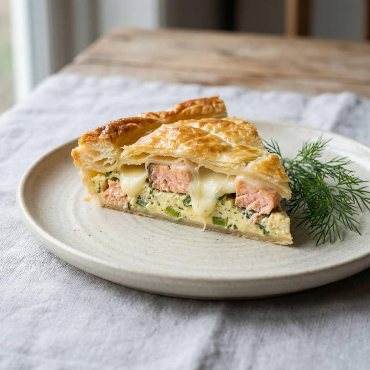 - Слоеное тесто — идеальный партнер для сочных начинок. Благодаря тому, что мы будем использовать предварительное выпекание (как в кише), оно останется хрустящим даже под слоем заливки и рыбы.