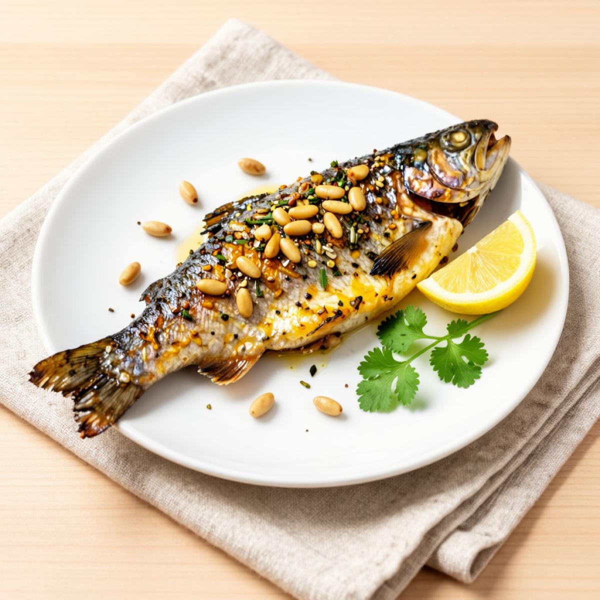 Азербайджанская кухня славится своими блюдами из рыбы, особенно из форели, которая водится в горных реках Кавказа. Рыбу запекают с пряностями, орехами, гранатом. Рецепт форели по-азербайджански с маринадом из кедровых орешков, корицы и имбиря - это современная интерпретация, которая сохраняет восточные традиции и радует изысканным вкусом.