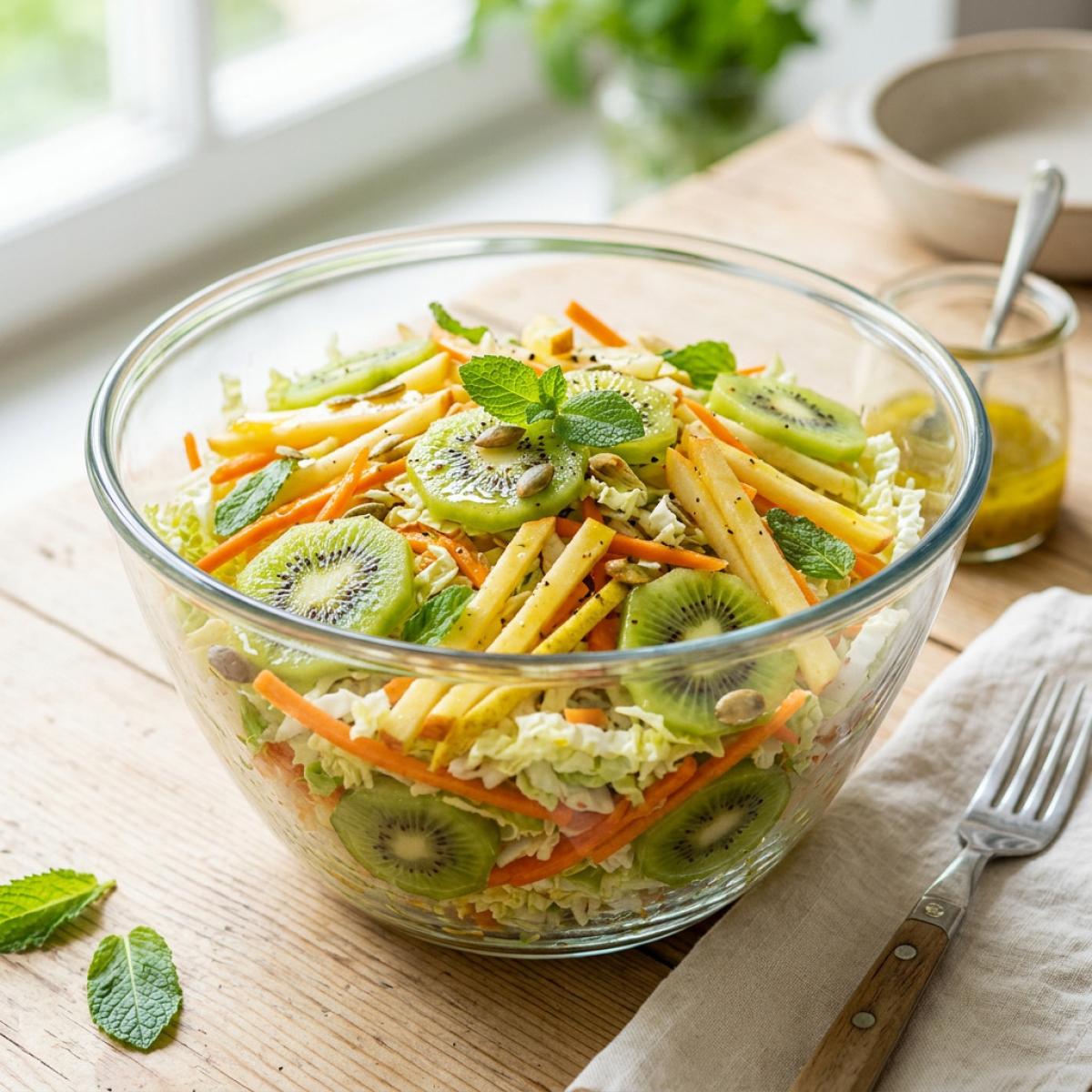 Мы привыкли, что пекинская капуста - это основа для классических овощных салатов в компании с огурцами и помидорами. Но что, если пойти дальше и добавить к ней фрукты? Результат вас приятно удивит! Этот салат - настоящий взрыв свежести: хрустящая пекинка, сочная морковь, сладкое яблоко, ароматная груша и пикантное киви в легкой заправке из оливкового масла и лимонного сока. Это идеальное блюдо для тех, кто любит экспериментировать и хочет открыть новые грани привычных продуктов. Легкий, витаминный и невероятно освежающий - он станет вашим любимым летним салатом. Я расскажу вам, как его приготовить.