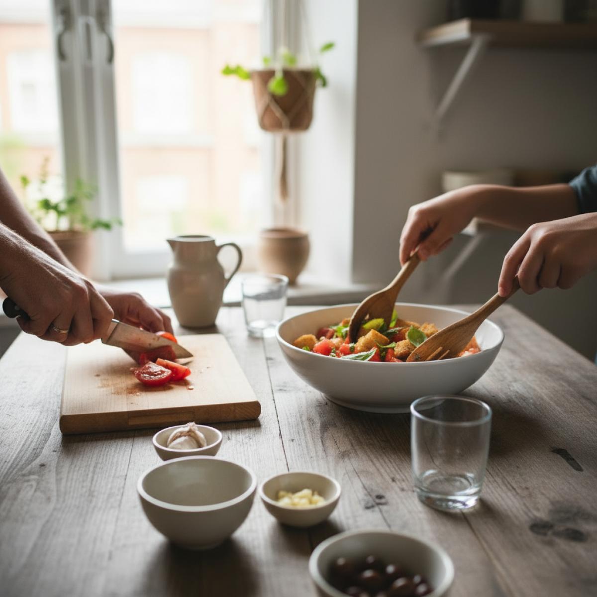 Салат из помидоров с гренками