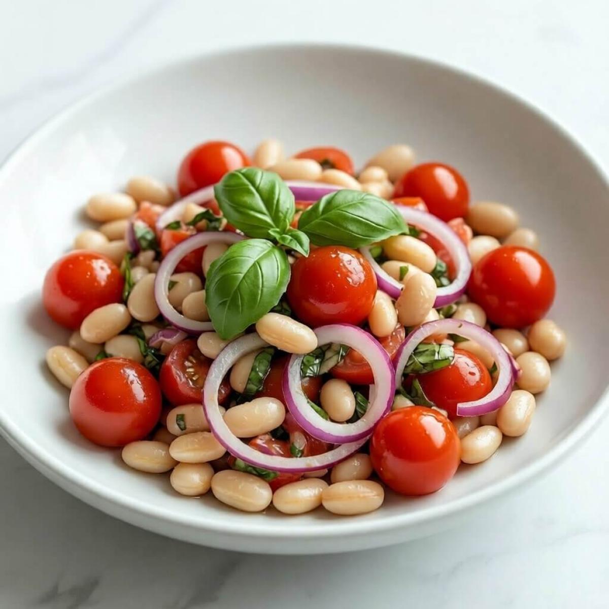 Салат с фасолью и помидорами - это классика, которая никогда не надоедает. Сытная, нежная белая фасоль, сочные, сладкие помидоры черри, пикантный красный лук и ароматная заправка с чесноком, горчицей и базиликом создают удивительно гармоничное и полноценное блюдо. Это идеальный выбор для легкого обеда, ужина или как гарнир к мясу. Он хорош и в теплом, и в холодном виде, а готовится очень просто. Я расскажу вам, как приготовить этот замечательный салат, который непременно станет вашим любимцем.