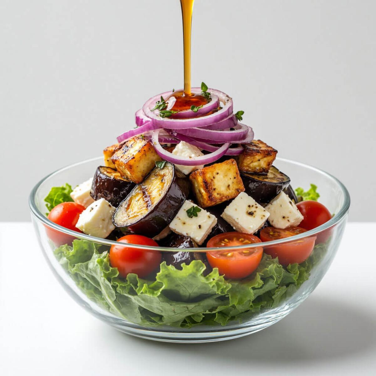 Баклажаны - удивительный овощ, который в умелых руках превращается в настоящий деликатес. В этом салате жареные до золотистого цвета кубики баклажанов встречаются с солоноватой брынзой, сладкими помидорами черри и свежим салатным луком. А пикантная заправка с чесноком, горчицей и орегано объединяет все ингредиенты в яркий, ароматный и очень сытный ансамбль. Этот салат - отличный выбор для легкого ужина или обеда, он одинаково хорош и теплым, и холодным. Я расскажу вам, как его приготовить быстро и без хлопот.