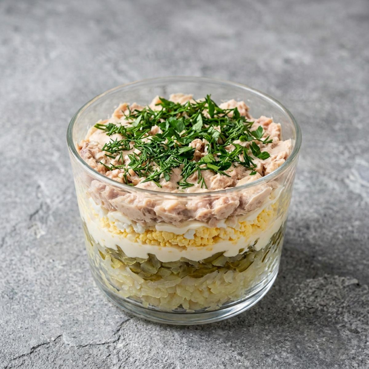 Слоеный салат с печенью трески — это блюдо, которое по праву считается одним из самых изысканных и праздничных на нашем столе. Нежная, тающая во рту печень трески, мягкий картофель, пикантные соленые огурцы и рассыпчатые яйца, выложенные аккуратными слоями и пропитанные майонезом, создают неповторимую гармонию вкуса. Это салат, который всегда уместен: и на Новый год, и на день рождения, и на любой другой праздник. Он выглядит нарядно, сытно и безумно вкусно. Его нежный, сливочный вкус с легкой кислинкой от огурцов покоряет с первой ложки. Я расскажу вам все секреты приготовления идеального слоеного салата с печенью трески, чтобы он получился сочным, красивым и незабываемым.