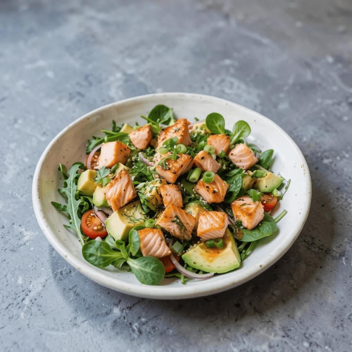 Есть блюда, которые звучат как музыка. Теплый салат с лососем и авокадо - именно из этой оперы. Нежнейшие кусочки лосося, замаринованные в соевом соусе и рисовом уксусе, а затем обжаренные до золотистой корочки, встречаются с кремовым авокадо, свежей зеленью и хрустящим луком. А финальный аккорд - горячий маринад, который объединяет все ингредиенты в едином, изысканном танце вкусов. Этот салат - настоящее гастрономическое удовольствие, достойное ресторанного меню. При этом готовится он совсем не сложно. Я расскажу вам, как приготовить этот шедевр и поразить своих гостей.