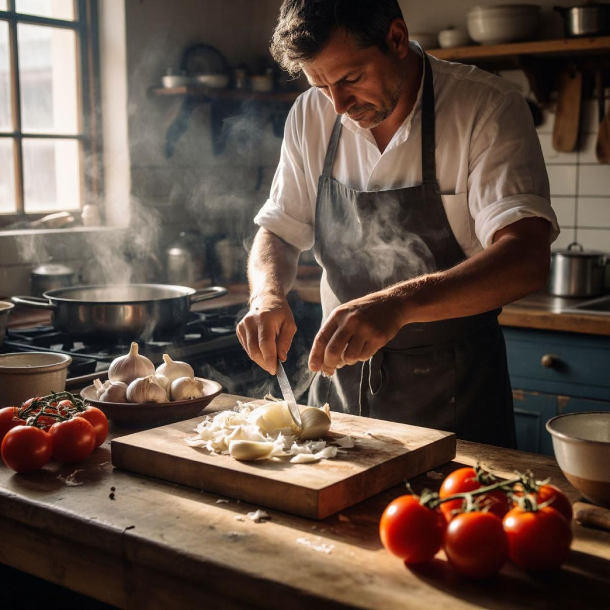 Приготовление этого супа — это стратегия, построенная на последовательном раскрытии вкусов. Мы не бросаем всё в кастрюлю разом. Сначала готовим крепкий, чистый бульон — фундамент. Затем закладываем в него картофель и первую порцию чеснока, которые должны развариться и отдать бульону свою крахмалистость и сладость. Параллельно создаём на сковороде мощную томатно-чесночную заправку, которая станет «душой» супа. Их встреча происходит ближе к концу варки, чтобы томаты и чеснок не переварились, а лишь передали бульону свой яркий вкус и аромат. И, наконец, финальное томление под крышкой — это тот этап, когда суп действительно «готовится» уже без огня. Будьте готовы к тому, что от супа будет исходить такой аромат, что соседи постучатся в дверь.