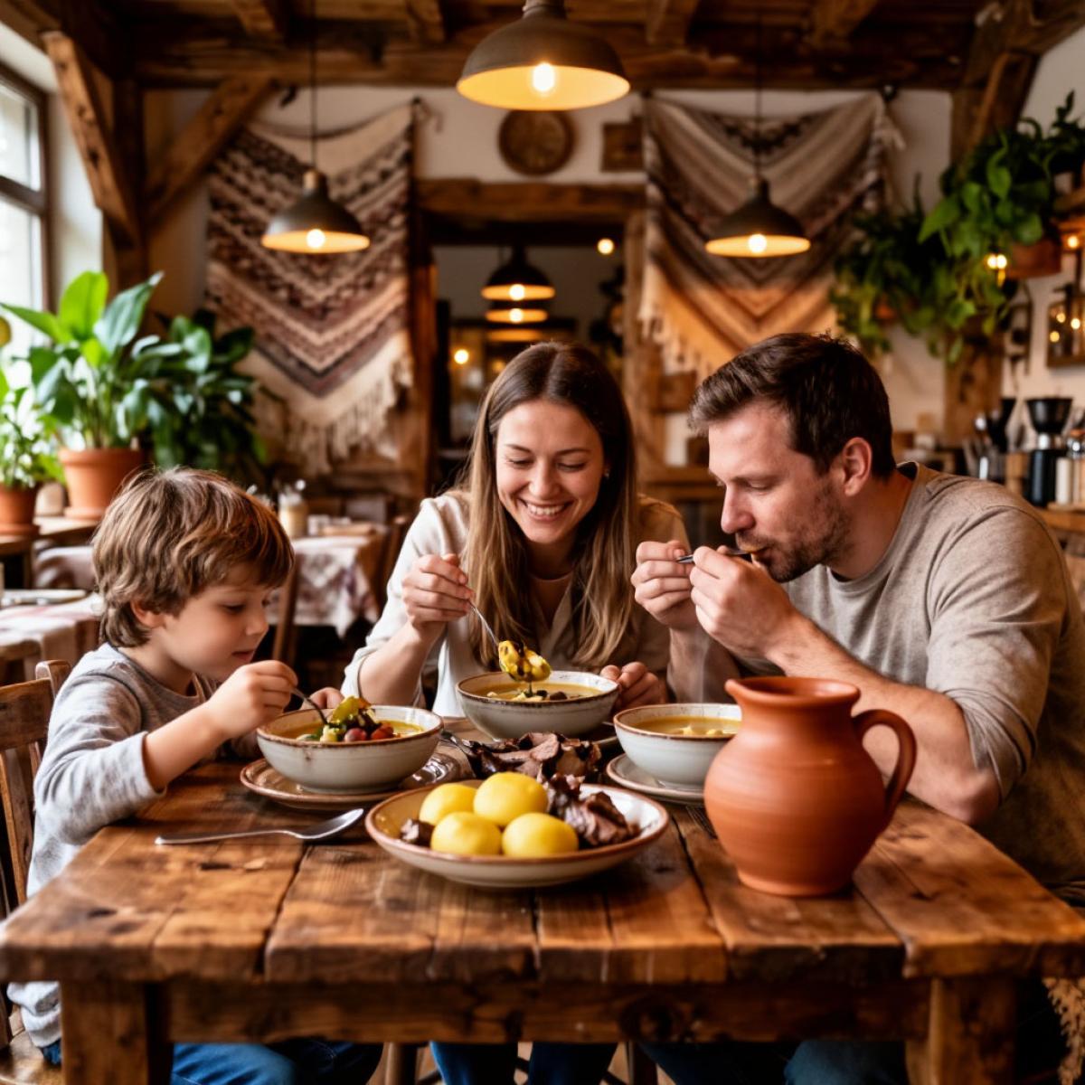 Этот суп хорош своей простотой и не требует сложного антуража. Подавайте его очень горячим, в глубоких керамических мисках. Обязательный аккомпанемент — свежий, хорошо пропеченный хлеб: бородинский, «Дарницкий» или с отрубями. На стол можно поставить отдельно сметану, горчицу и тарелку с нарезанным зелёным луком, редисом или солёными огурчиками для тех, кто любит поострее. Если суп готовится для детей, можно сделать из хлеба гренки. Для более сытного варианта в тарелку можно добавить ложку отварной перловки или риса. Этот суп прекрасен на следующий день, когда его вкус становится ещё глубже и насыщеннее.