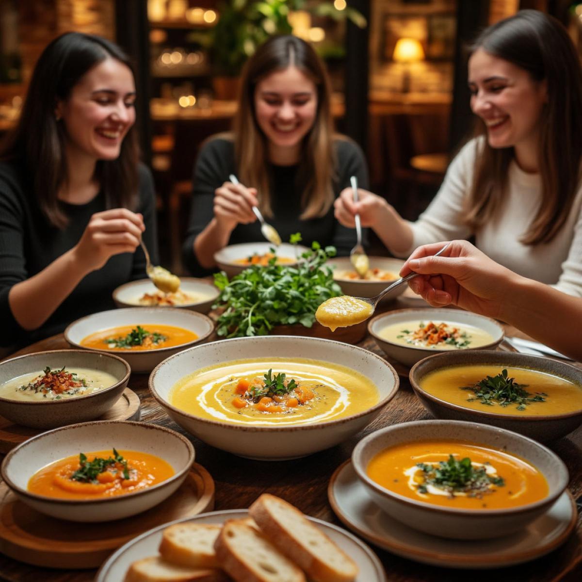 - Цвет — это вкус: Овощные супы-пюре — самые яркие блюда на столе. Оранжевый (тыква/морковь), зеленый (брокколи/шпинат), белый (цветная капуста). Яркость цвета напрямую зависит от времени варки: чем дольше варите, тем тусклее (и менее полезным) становится суп.