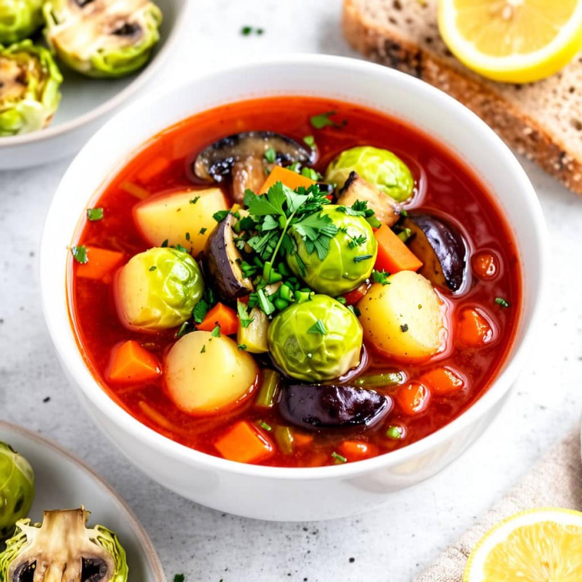 Борщ - это, пожалуй, одно из самых любимых и почитаемых блюд в нашей кухне. Но что делать, если хочется чего-то привычного, но при этом легкого и постного? Ответ есть! Сегодня я поделюсь с вами рецептом удивительного постного борща с грибами и брюссельской капустой. Это блюдо - настоящая находка для тех, кто соблюдает пост, следит за фигурой или просто хочет разнообразить свое меню. Несмотря на отсутствие мяса, этот борщ получается необычайно насыщенным, питательным и ароматным благодаря большому разнообразию овощей и грибов. Представьте: наваристый бульон, в котором плавают кусочки картофеля, нежная брюссельская капуста, ароматные баклажаны, сладкая паприка, а также грибы и свекла, придающая борщу тот самый красивый цвет. А заправка из чеснока и зелени делает его просто божественным. Это идеальное блюдо для холодного времени года, которое согреет и насытит без лишней тяжести. Я подробно расскажу вам о всех этапах, чтобы у вас получился этот замечательный постный борщ.