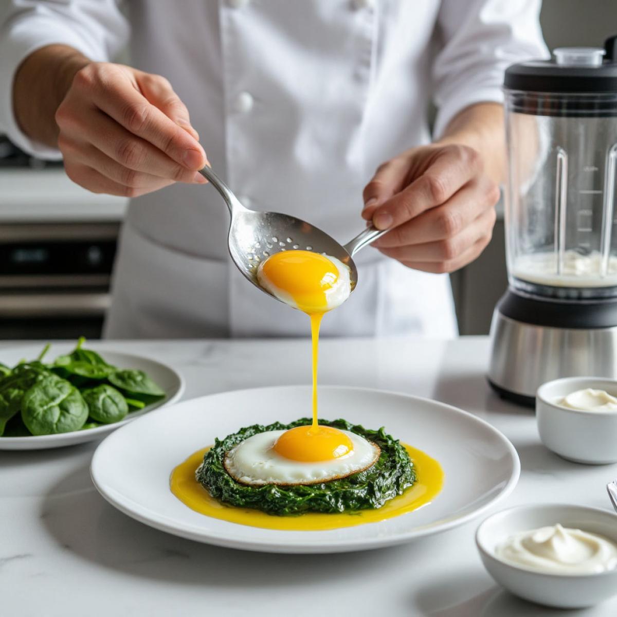 Успех этого элегантного блюда построен на точной науке и технике. Приготовление яйца-пашот - это контроль температуры и кислотности. Уксус в воде повышает ее кислотность, что снижает температуру коагуляции белка. Белок сворачивается быстрее, образуя аккуратный мешочек вокруг еще жидкого желтка. Создание воронки в воде перед добавлением яйца закручивает белок вокруг себя, помогая сохранить форму. Выключение огня и томление в горячей воде позволяет яйцу дойти до идеальной консистенции без переваривания. В супе ключевую роль играет ру - смесь жира (масла) и муки, прогретая до удаления сырого вкуса. При добавлении жидкости и нагревании крахмальные зерна в муке набухают и связывают воду, создавая стабильную загущенную основу, которая не расслоится. Пассерование шпината перед добавлением в суп позволяет удалить излишки влаги и сконцентрировать его вкус и цвет, а также сохранить ярко-зеленый оттенок хлорофилла. Добавление сливок в самом конце без кипячения предотвращает коагуляцию их белков и расслоение супа. Мускатный орех, добавленный к шпинату в момент снятия с огня, максимально раскрывает свой аромат от остаточного тепла. Наконец, сервировка горячего супа с теплым, но не горячим яйцом-пашот создает идеальный температурный контраст, который позволяет желтку оставаться жидким до самого момента подачи.