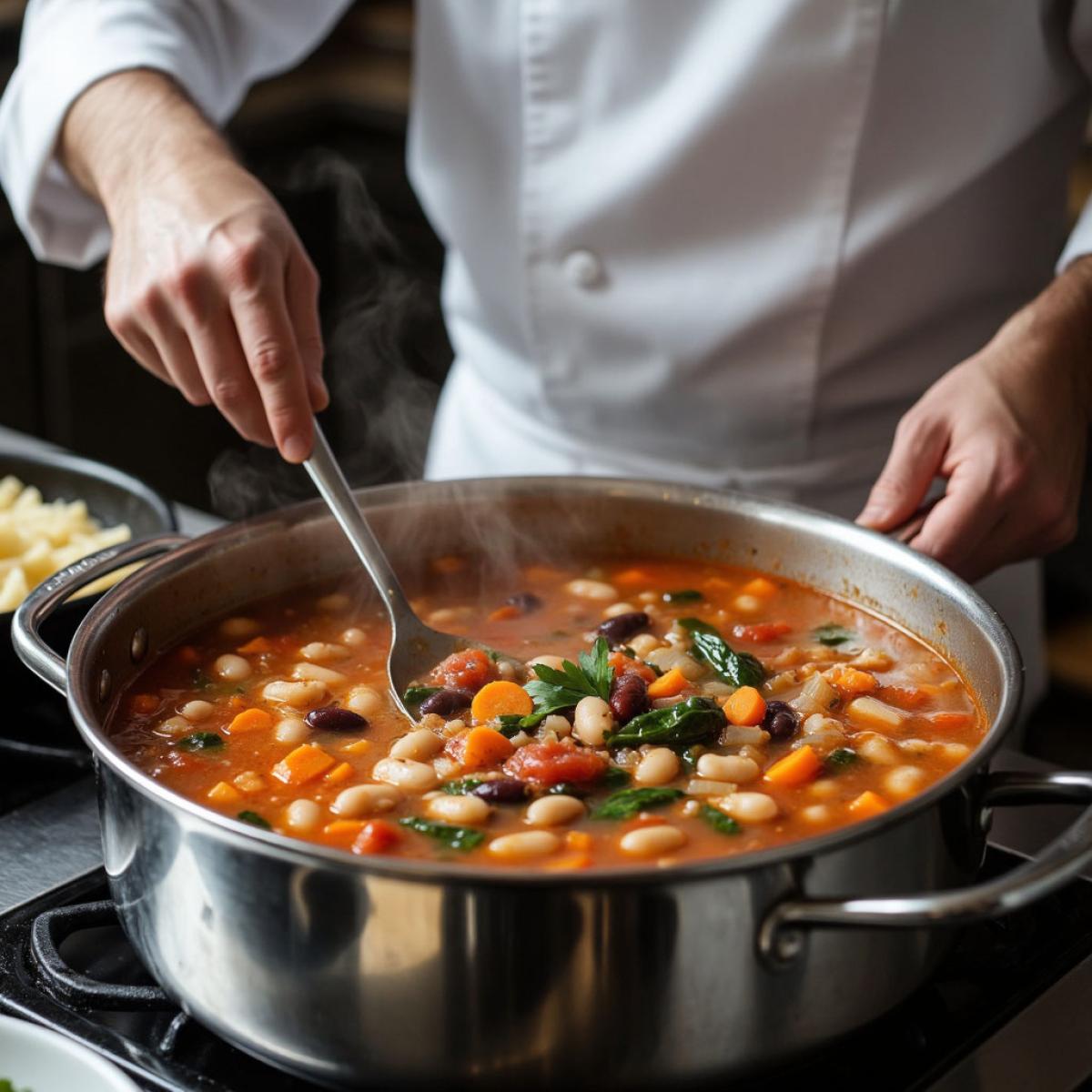 - Большой Суп: Само слово «Minestrone» происходит от итальянского «minestra» (суп) с увеличительным суффиксом «-one». Буквально это переводится как «Большой суп» или «Супище». Это указывает на богатство ингредиентов и густоту блюда.