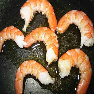 Очень нежный тыквенный суп-пюре, приготовленный на молоке или сливках. Густая, сладковатая основа супа гармонично сочетается с острым вкусом креветок, обжаренных в чесночном масле. А готовится такой супчик очень быстро и не хлопотно.1. Тыкву отделить от рыхлой сердцевины и нарезать кубиками.2. В сотейник добавить немного бульона и стушить в нём тыкву вместе с луком до мягкости.3. Тыкву растолочь в однородное пюре. Долить оставшийся бульон и пару минут прокипятить.4. Постепенно, при постоянном помешивании, влить горячее молоко или сливки. Перемешать, довести до кипения, выключить огонь и накрыть крышкой.5. Пока суп будет настаиваться, в сковороде разогреть масло и положить в него дольки чеснока и острого перца. Прогреть до появления характерного чесночного запаха.6. Чеснок и перец убрать из сковородки. Очищенные креветки обжарить в чесночном масле до готовности.7. Суп разлить по порциям и украсить зеленью. Креветки нанизать на деревянные шпажки и подать вместе с супом.