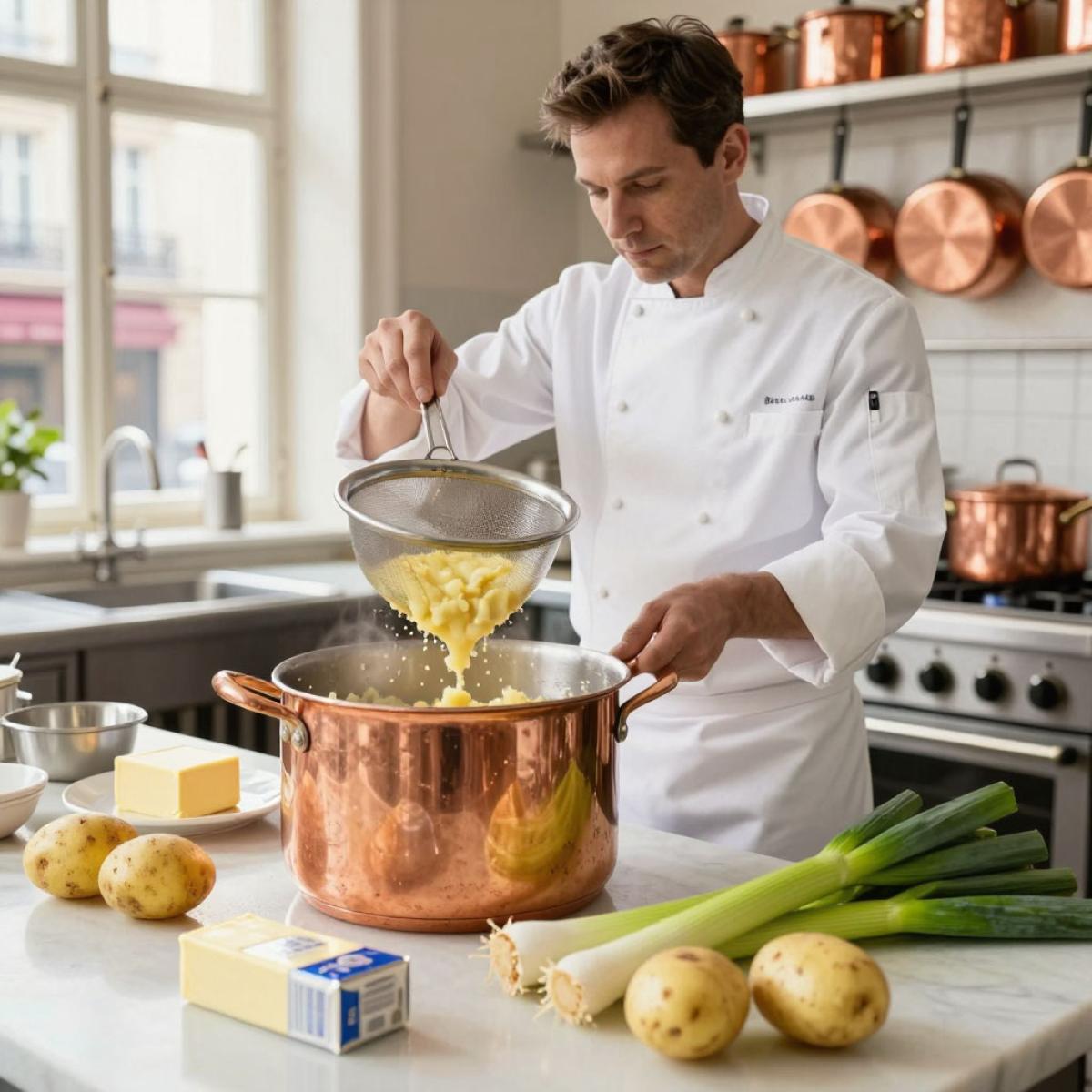 - В классическом французском варианте суп никогда не содержит чеснок, сельдерей или другие корнеплоды. Это чистейший дуэт порея и картофеля, где каждый играет свою роль.