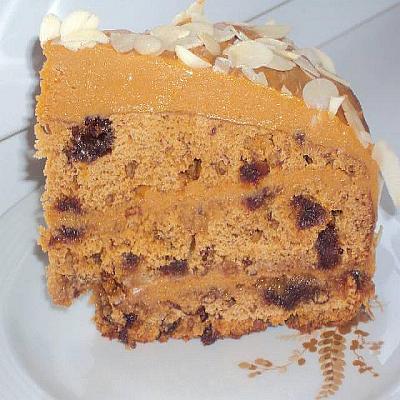 1. Из фиников удалить косточки, залить кипятком и оставить на 20 мин. для размягчения.2. Маргарин растопить, смешать с сахаром и яйцами и тщательно взбить миксером или венчиком.3. Засыпать муку с разрыхлителем и замесить однородное эластичное тесто. Добавить распаренные финики.4. Тесто разделить на 3 равные части и выпекать по отдельности 3 коржа (каждый по 20 мин. при температуре 200 гр.).5. Когда коржи полностью остынут, каждый разрезать вдоль на 2 части.6. ДЛЯ КРЕМА: сливки взбить с варёной сгущенкой в пышную массу. Каждый корж пропитать полученным кремом. По желанию в крем можно добавить измельченные орешки.