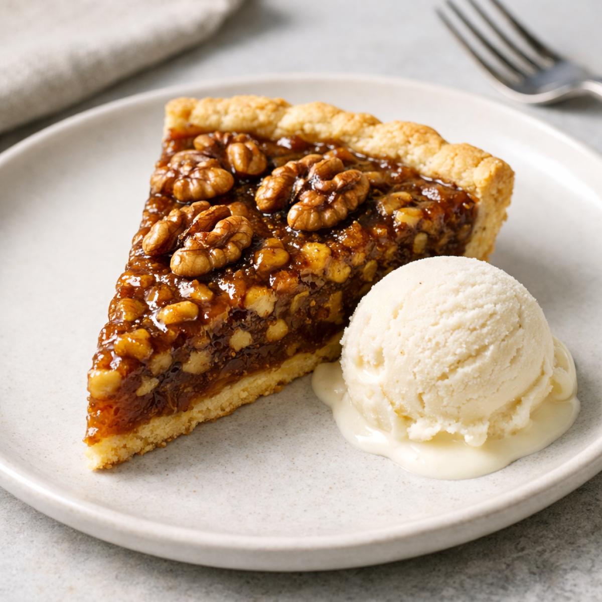 - 10. Подача: Подавайте ореховый пай при комнатной температуре или слегка теплым, с шариком ванильного мороженого или ложкой взбитых сливок.