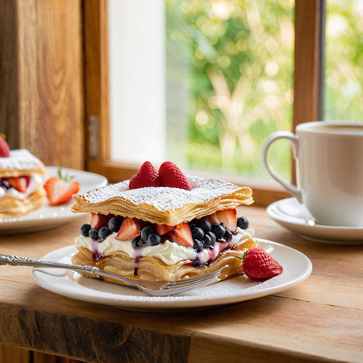 Используйте греческий йогурт 2% вместо сметаны, сахарозаменитель вместо сахарной пудры и готовое тесто фило вместо слоёного. Калорийность снизится почти вдвое, а торт останется вкусным и нежным.