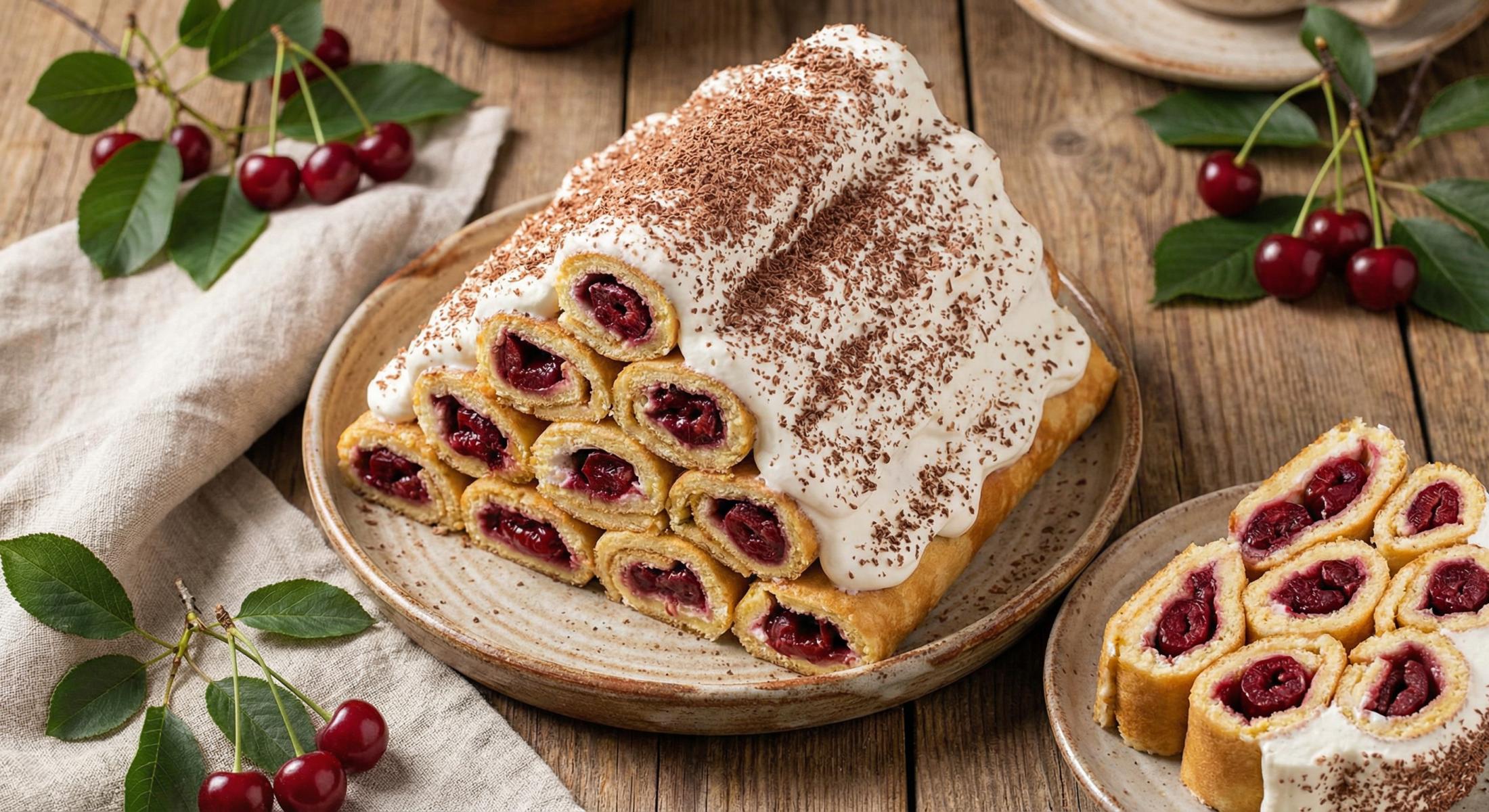 - Идея прятать целые ягоды в тесто пришла из европейской кухни (например, штрудель), но в этом торте вишня становится не просто начинкой, а конструктивным элементом.