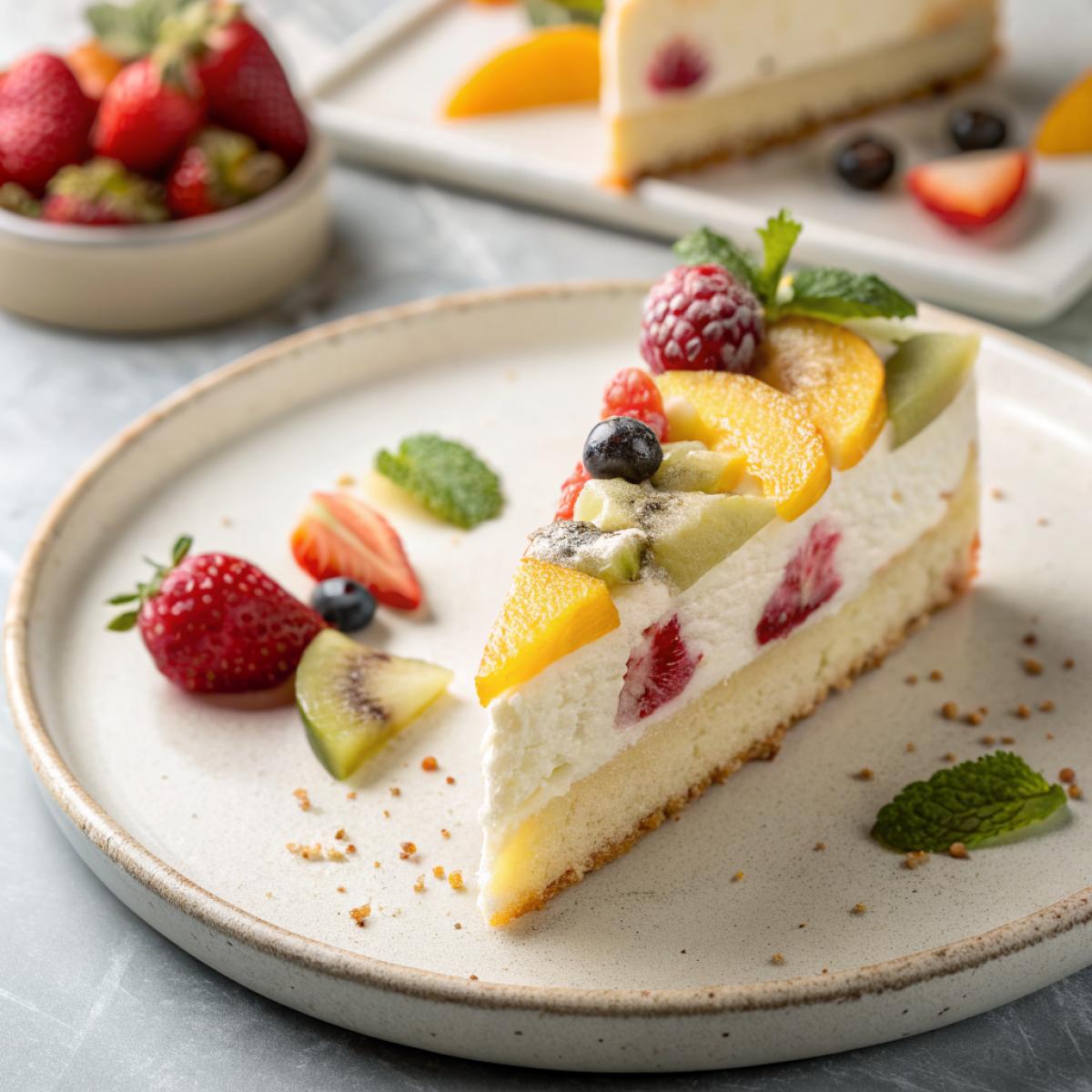 Мы приготовим этот торт в три этапа. Сначала сделаем основу - классическую песочную крошку с маслом, которая станет нашим «фундаментом». Её нужно будет утрамбовать в форму и запечь всего 10-15 минут (или просто охладить, если вы используете готовое печенье). Пока основа остывает, займемся самой главной частью - йогуртовым суфле. Смешаем греческий йогурт с сахаром, ванилью и подготовленным желатином, а затем аккуратно введем взбитые сливки, чтобы придать массе воздушность. Останется выложить в форму слой за слоем суфле и фрукты, создавая красивый рисунок. Убираем в холодильник до полного застывания. Украшаем свежими фруктами и ягодами. Идеальный комплимент готов!