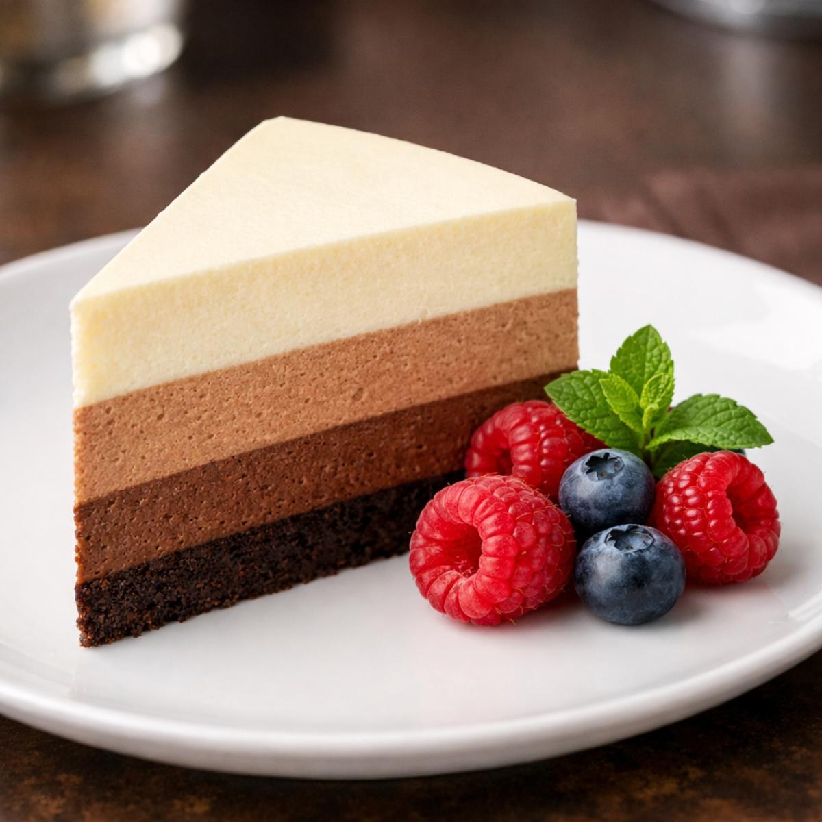 Торт "Три шоколада" - это вариация на тему классического чизкейка, которая обрела популярность в 1990-х годах. Кондитеры искали способы удивить искушенную публику и начали экспериментировать с многослойными муссовыми десертами. Сочетание трех видов шоколада в одном торте оказалось настолько удачным, что быстро стало хитом. Сегодня этот десерт можно встретить в меню многих ресторанов и кофеен по всему миру. Он любим за эффектный внешний вид и гармоничный вкус, где каждый слой дополняет другой, создавая полную палитру шоколадного наслаждения.