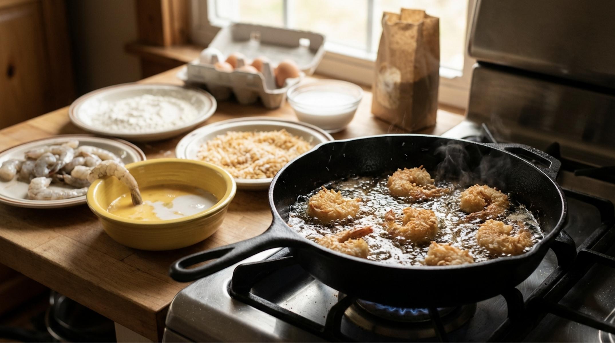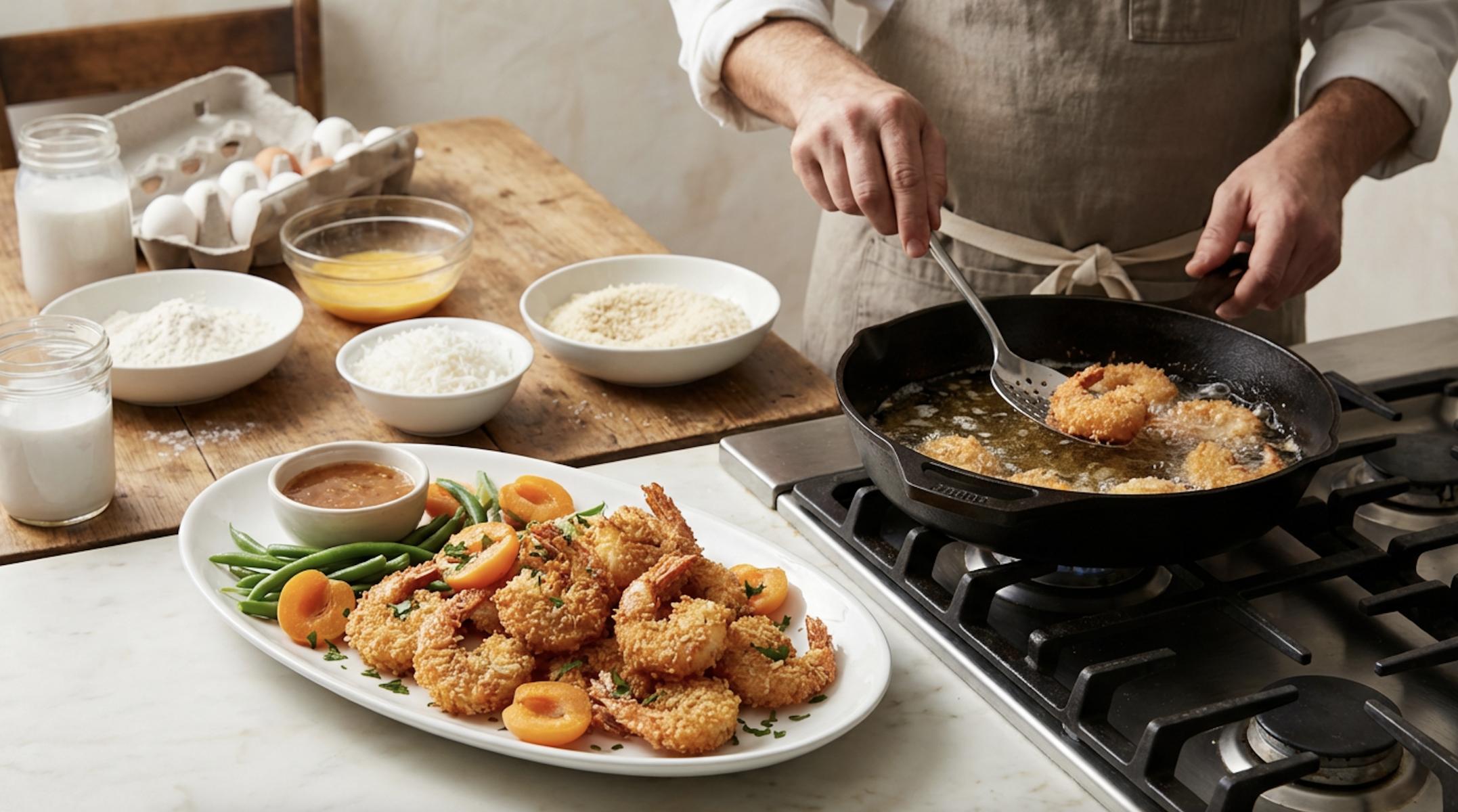 - Замочите креветки в смеси яйца и кокосового молока, затем обваляйте их в панировочных сухарях. Это придаст им хрустящую корочку. Для максимального хруста можно использовать японские сухари панко - они крупнее обычных и создают особенно воздушную текстуру.
