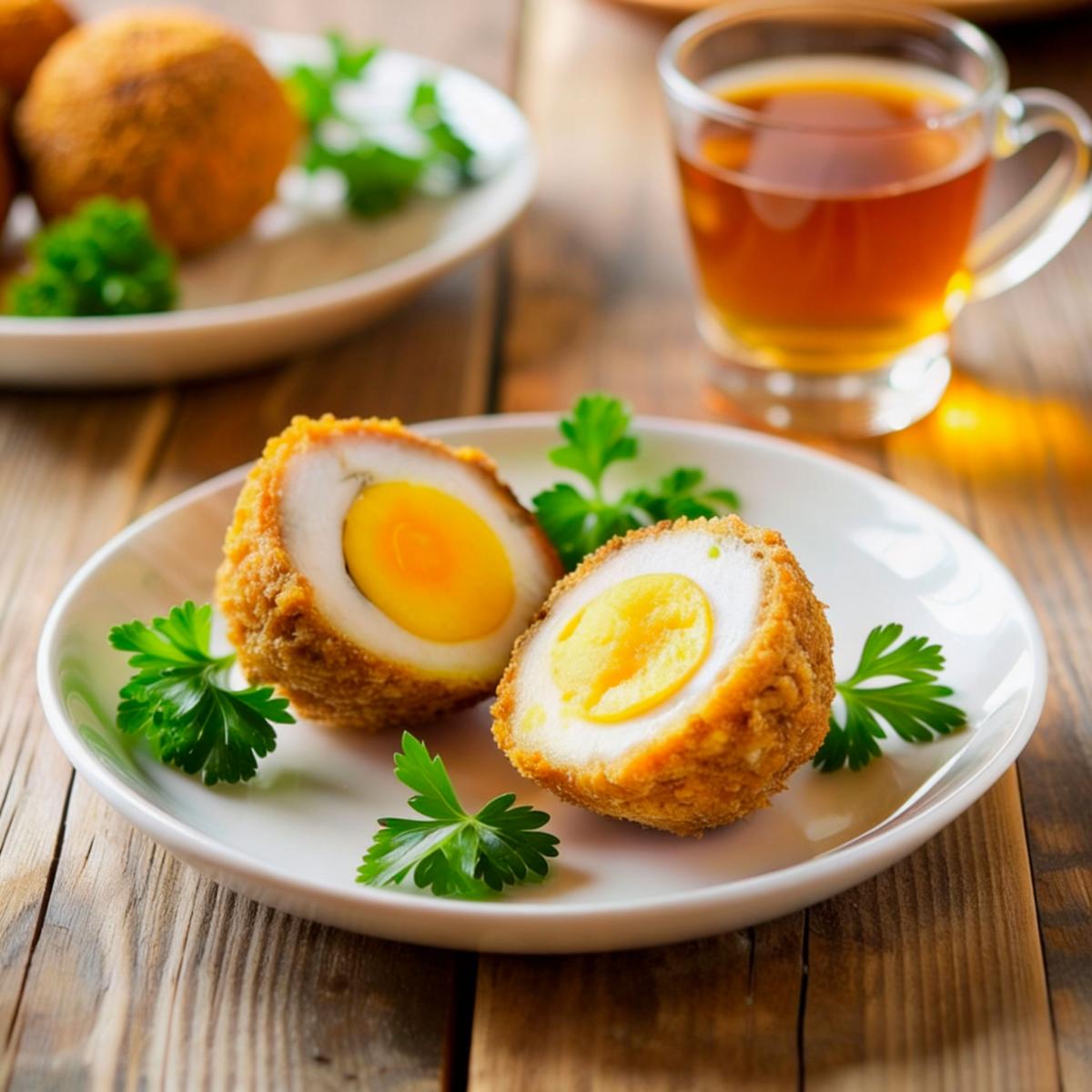 Историческая справка: Яйца по-шотландски были изобретены в лондонском магазине деликатесов Fortnum & Mason. Изначально они создавались как способ сохранения яиц для путешественников. Со временем рецепт эволюционировал, и блюдо стало популярным по всей Британии, особенно в Шотландии, где его часто подают на праздники и в пабах.
